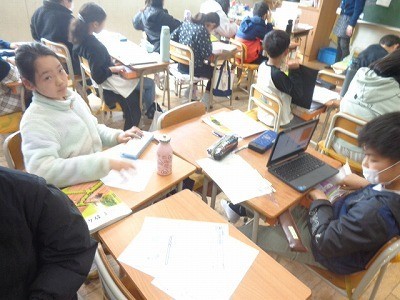 立方体や直方体の性質について、グループになって考えていました。