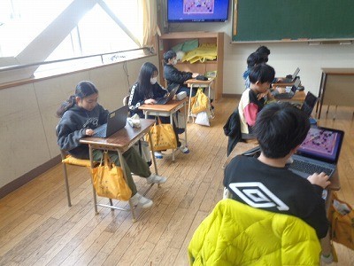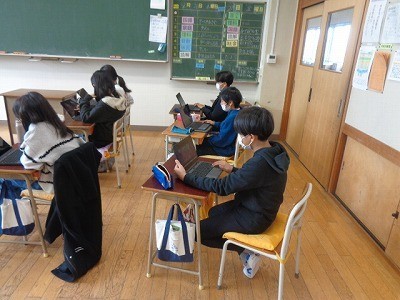 クロームブックを使って、今までの復習を行っています。