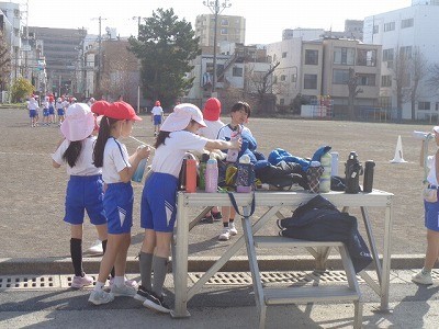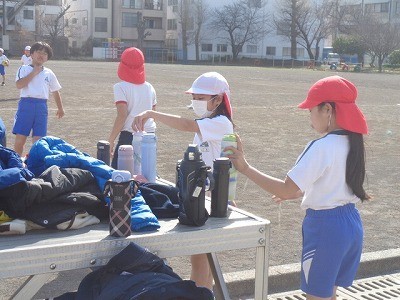 水分補給をしながら、ゲーム形式で活動していました。