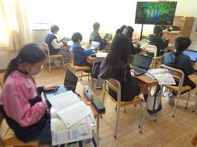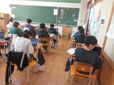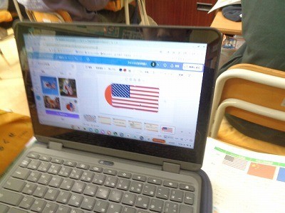 日本と関連のある国についてしらべ、クロームブックを使ってまとめています。