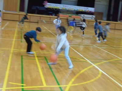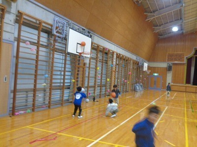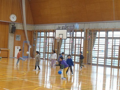 今日は雨天のため、室内での活動です。体育館は2年生が使っていました。みんな元気よく遊んでいます。