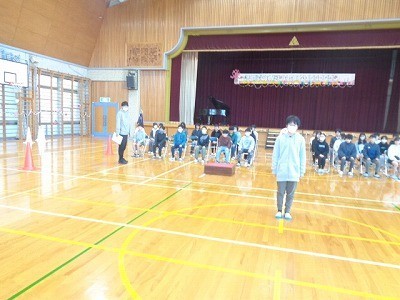 1時間目に卒業式の練習を行いました。今日は卒業証書授与の練習です。最初や最後の子供たちの三方礼、卒業証書の受け取り方、礼のタイミングなど一通り通して全員が確認していきました。