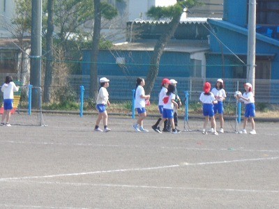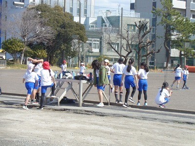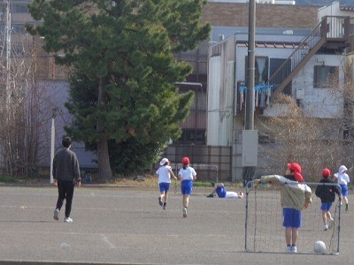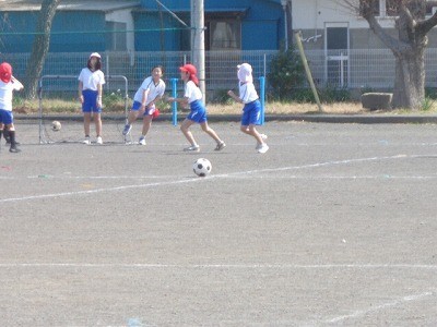 サッカーを行っています。グループを作って、試合形式で活動していました。