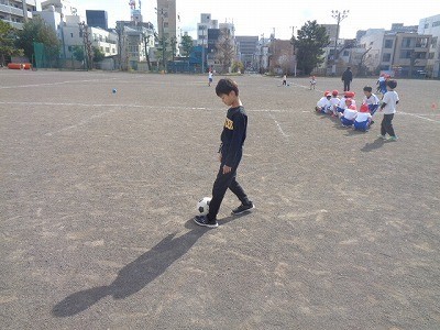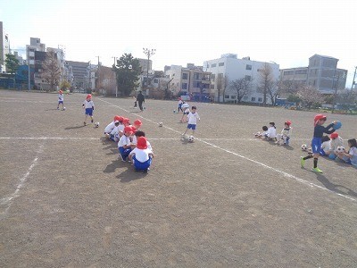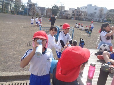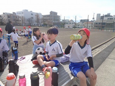 サッカーを行っています。定期的に水分補給を行いながら活動しています。