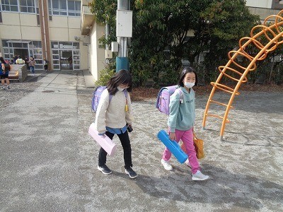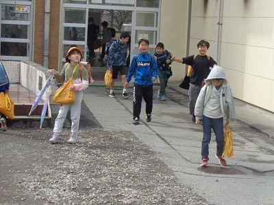 日は出ているけど、雨がぱらついている。そんな中、子供たちは帰って行きました。