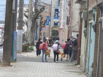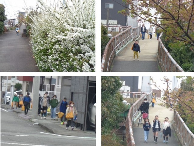 登校のようすです。今週にはいり、寒さが戻ってきましたが、子供たちは元気に登校しています。