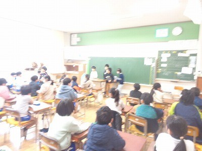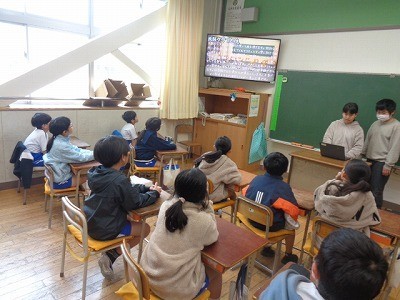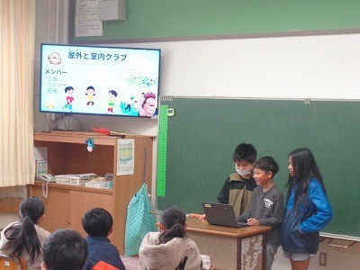 4年生が3年生に向けてクラブ活動の紹介を行っています。来年から始まるクラブ活動について、4年生が自分たちが行ってきたことを、わかりやすく説明していました。