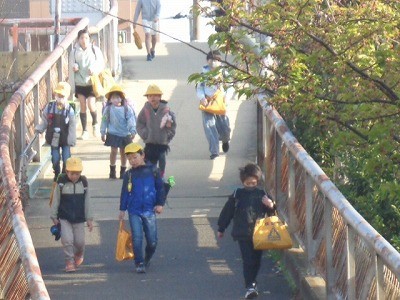 登校のようすです。みんな元気に登校しています。