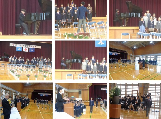 9:20卒業生入場と共に、卒業証書授与式が開式しました。卒業証書を受け取る子供たちの姿は、6年間を立派に過ごしたという自信に満ちあふれた様子が見られました。最後の言葉では、一人ひとりが堂々と6年間がんばってきたことを伝え、素晴らしい歌声で終えることができました。