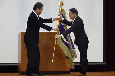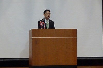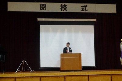 学校長から教育長へ校旗返納をおこなったあと、校長式辞、教育長挨拶を行いました。