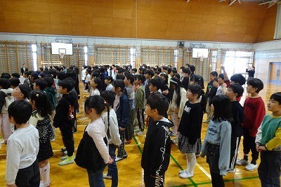 その後、児童代表挨拶では、この一年間統合のためにがんばってきたことや仲間との生活を大切にしてきたことなどをつたえ、4月からの集明小のさらなる発展を祈念していきました。