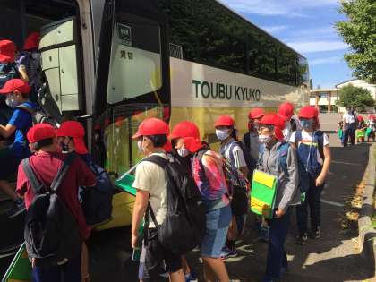 4年生が社会科見学に出発しました。ちょうどい合わせたかわいい1年生が「いってらっしゃーい。」と手を振ってくれました。清掃プラント、浄化センターで学習してきます。晴れ男、晴れ女かな、この学年の行事はよい天気のことが多いです。