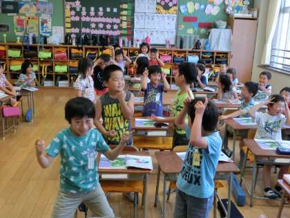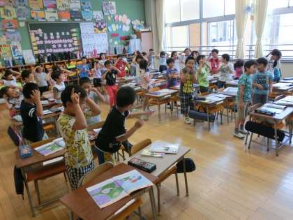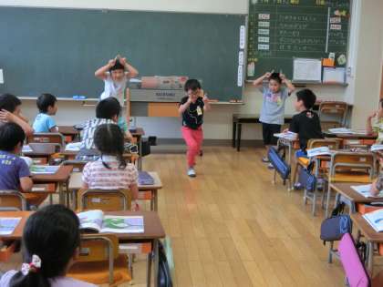 1年生は、音楽で「かたつむり」を歌いました。動作をつけて上手に歌いました。