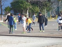 ペットボトルキャップを、「カレー」「からあげ」「ミルメーク」の希望する箱に入れています。「カレー」がリードしてきたかな?