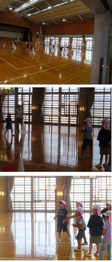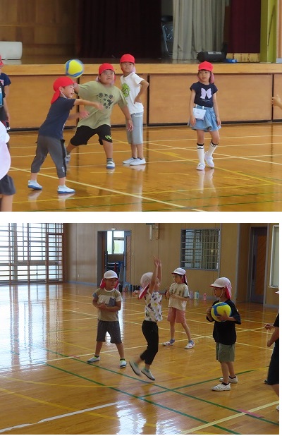 お楽しみ会で、ドッジボールを行いました。みんなでなかよくあそびました。