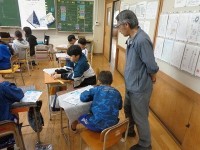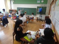 2学期に鑑賞した、「銀河鉄道の夜」を例にとりながら、一つ一つの言葉からどんなことが想像できるか考えています。そしてその想像を絵に表していきます。