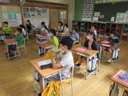 体育(保健分野)の学習です。担任と一緒に栄養教諭の先生が授業をしてくれました。3年生で学習した栄養のことを振り返りながら、 体の発育・発達について学習しました。
