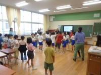 児童会であつめた、ペットボトルキャップを業者の方に贈呈しています。