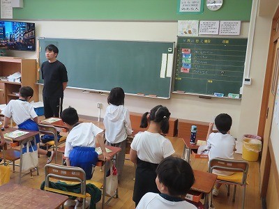 あいさつをしたあと、みんなで内容をかくにんしています。