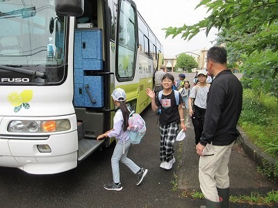 今日から5年生は、自然教室に出かけます。出発式の後、1年生に見送られて、元気にバスに乗り込んで出発していきました。自然の中で、楽しんできてください。