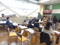 出発式のようすです。スローガンの確認をしたり、目標の確認をしたりしました。1年生も見送ってくれました。