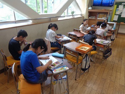 ひまわりの花をつくっています。自分のねがいを真ん中にかいています。