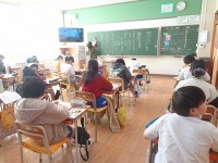 今までの復習を行っています。 教室の後ろには、3校合同フェスティバルでつかう景...