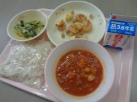 今日の給食は、・ジャンバラヤ・いかメンチカツ・ABCスープです。 今日は、「ジ...