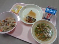 今日の給食は、・ジャンバラヤ・いかメンチカツ・ABCスープです。 今日は、「ジ...