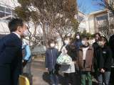 下校時の児童玄関付近の様子です。「1年間ありがとうございました。」、「さような...