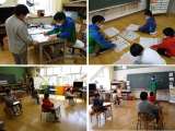 5組さんです。先生に漢字を見てもらったり、みんなで新聞紙を使ってゴミ袋を作りま...