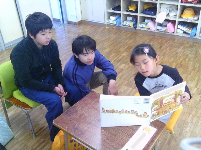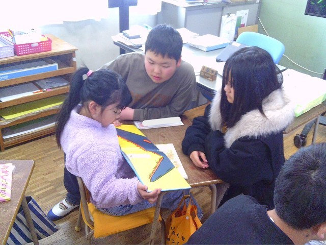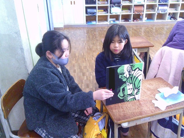 今朝は、下学年が上学年に読み聞かせをする ふれあい活動 です。暖かく見守る上学年の姿に優しさが溢れています。