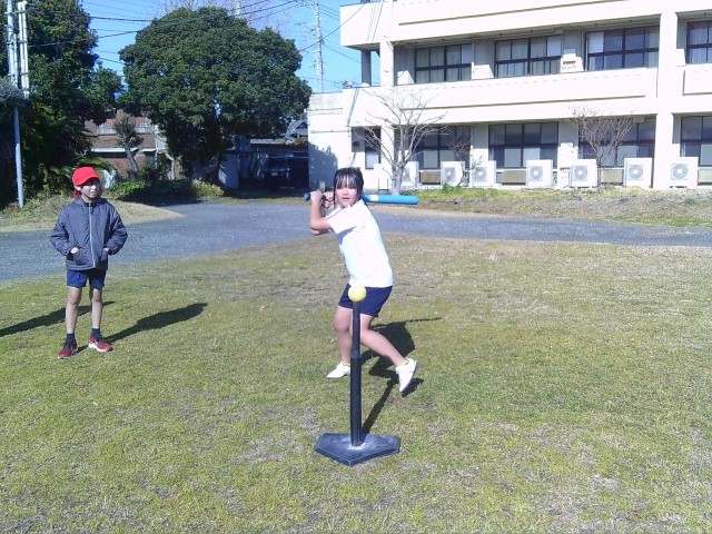 ティーバッティングでは、良い構え、フォロースルーで強打者の雰囲気です!