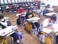 4年算数「垂直・平行と四角形」の様子です。平行四辺形について調べていました。2組の向かい合った辺が平行であることのほかにどんなひみつがあるのか、角の大きさや辺の長さを調べていました。