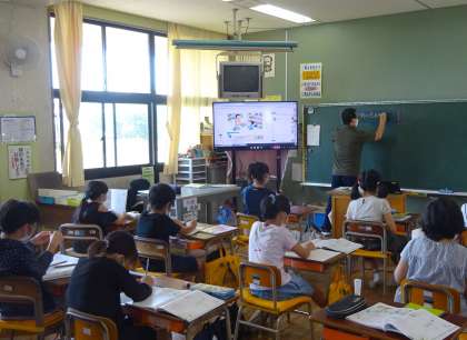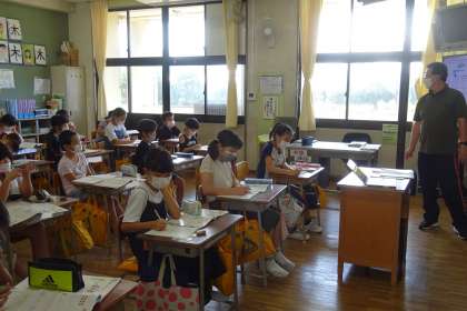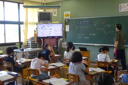 3年算数「1けたをかけるかけ算」の様子です。23円の画用紙を3枚購入する場合の代金を求めます。2桁×1桁のかけ算の仕方を考えていきます。