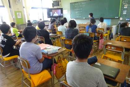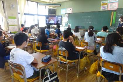 10月の朝会を、校長室と教室をつなげオンラインにて実施しました。
