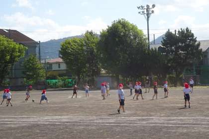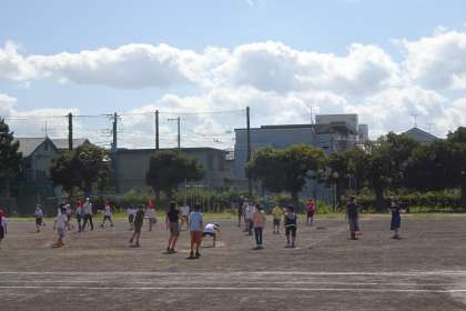 元気よく、グラウンドで遊ぶ姿が見られるようになりました。2年、4年、5年がドッジボールをして楽しんでいました。