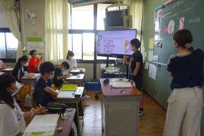 交流後は、考えを全体に発表していきました。学習の終わりに振り返りを書く姿に、本時の授業の達成感が伝わってきました。