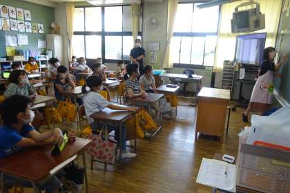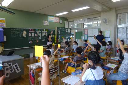 3年食育の様子です。栄養教諭による出張授業で、「食べ物の3つのはたらき」について学習しました。食べ物の栄養は、「体をつくる」「体の調子を整える」「エネルギーになる」の3つがあることを学習しました。