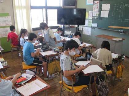 必要に応じてChromebookを使って調べたり,綴りを確かめたりしながら,集中して取り組んでいました。