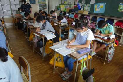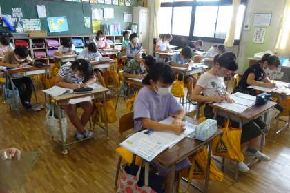 3年書写「硬筆」の様子です。はがきの書き方を練習しました。文字の大きさと配列に気をかけて書くことが目標です。みんな集中して取り組み、声が聞こえてきませんでした。
