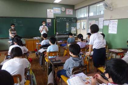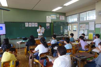 5年英語の様子です。本時は、「 I can , I can't 」を使った学習をしました。つなげる物としてもスポーツの名称を確認していました。