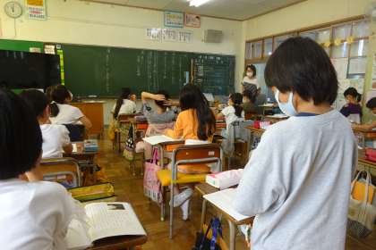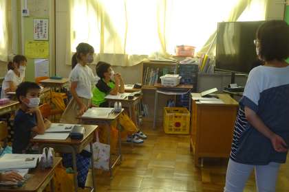 4年国語「二つの文章をくらべて読もう」の様子です。ムササビについて説明したA,B二つの文章について読み比べ、説明の仕方の違いを確かめていく学習です。本時は、どちらの文章に関心を持ったか、理由やわかったことを話し合いました。関心を持った理由について文章をもとにしてしっかりと考えを伝えることができていました。
