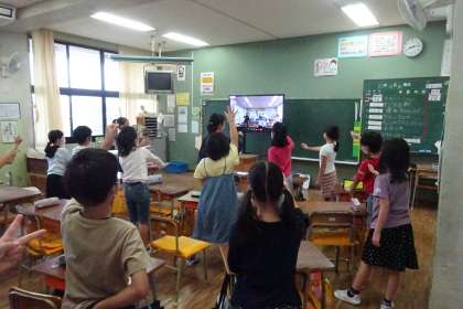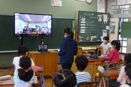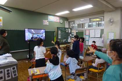 千本小の3年生との交流会の様子です。朝の活動の時間、Chromebookの機能を使ってオンライン学年集会をしていました。2学期になって3回目です。