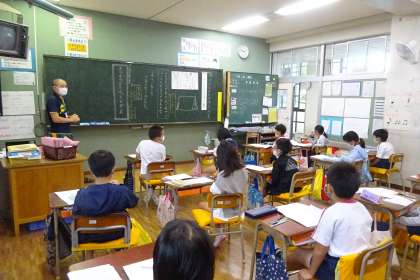 2年国語「こんなものがほしいなあ」の様子です。「どんなものがあったら、困ったことを解決できるかな。」と投げかけ、各自アイデアを出していきます。その考えたことの説明の順序を考えて話をする学習です。本時は、困ったこと、そしてそれを解決する物を考えていました。