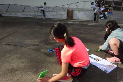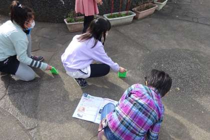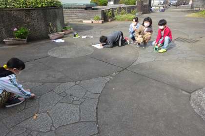 3年理科「太陽の光」の様子です。太陽の光を鏡に当て、日陰で光の道を映し出していました。鏡の当て方がポイントになります。