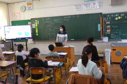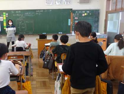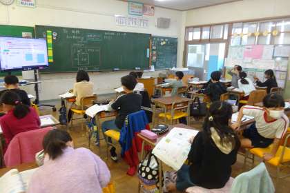 4年算数「面積」の様子です。これまでよりも大きな面積についての学習です。平方メートルの単位を知り、練習問題に取り組んでいました。