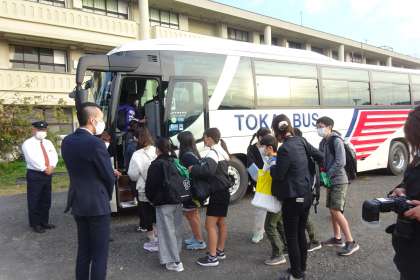 19日(金)に6年生が静岡方面へ日帰り修学旅行へ行ってきました。11月に入り、「校長先生、修学旅行まであと○日ですね。」と会う度に、うれしそうに6年生が話しかけてきました。待ちに待った修学旅行です。7時30分に全員が集合。天気も晴れでした。