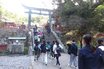 久能山東照宮は、最初のグループ活動です。ここまでロープウェイできたので、階段を登る元気は十分あります。みんなで仲良く行動しました。