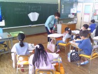 1年算数の様子です。「のこりはいくつ」のまとめとして、AIドリルを使って復習をしていました。正解を表す音「100点」の表示に喜んでいました。